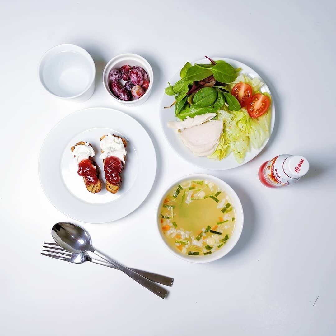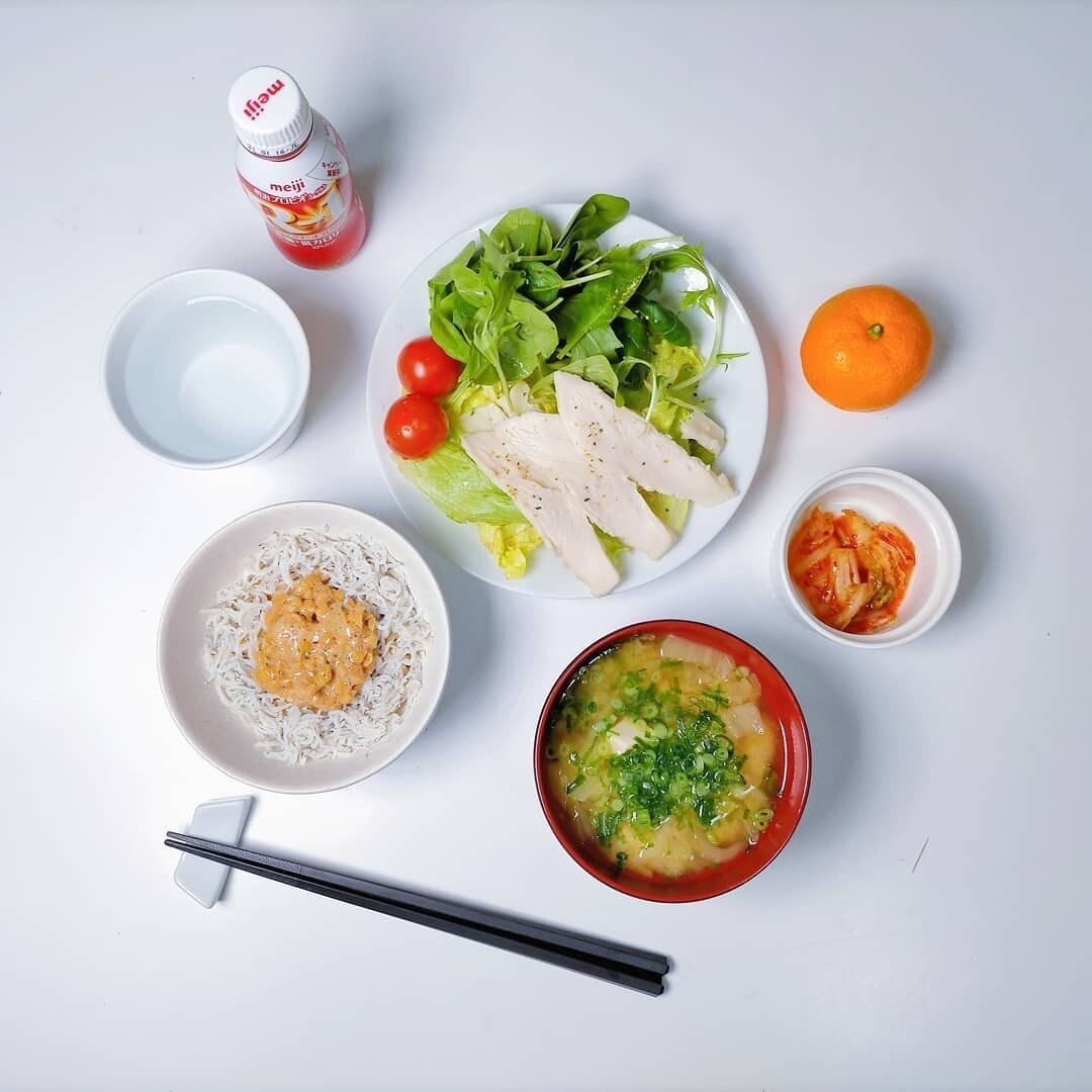 この日のランチには、脂質70%オフのグラノーラをチョイス。栄養バランスを意識して、サラダチキン・ヨーグルト・野菜や果物と組み合わせました。ダイエットには不向きとされることがあるグラノーラも、脂質オフのものを選んだり、たんぱく質食材を足したりすれば、ヘルシーに取り入れられますね。