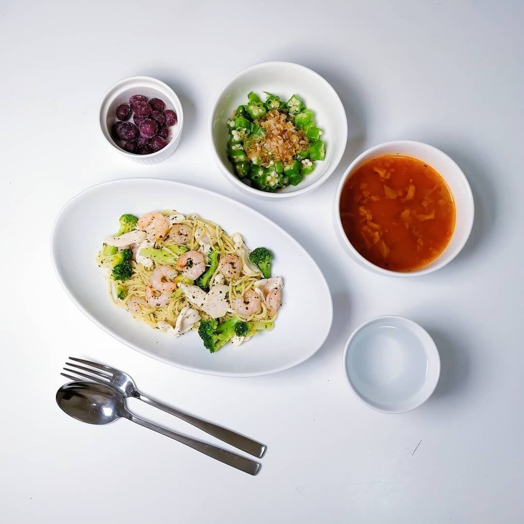 ダイエット中は控えがちなパスタも、味つけを工夫して脂質を抑えればOK。オイルが多いレトルトタイプのパスタソースではなく、シーズニングなどの粉末タイプを使うのがおすすめです。また、たんぱく質が豊富なサラダチキンをトッピングし、オクラやスープから先に食べることで、パスタの量が少なめでも満腹感を味わえるといいます。