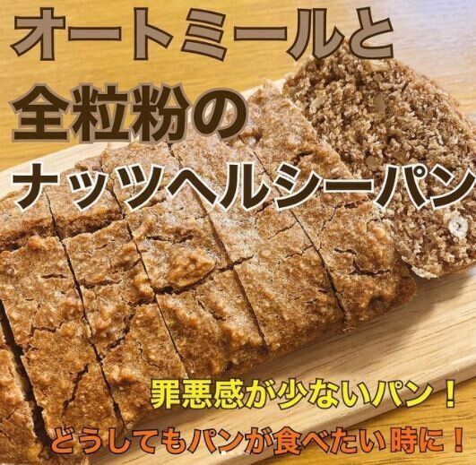 3カ月で体重-7kg・体脂肪率-11%を達成したdietseikaさん。糖質管理や筋トレでダイエットを続けています。こちらは、オートミールをフードプロセッサーで粉々にし、全粒粉やナッツなどの材料を混ぜて焼いたヘルシーなパン。ダイエット中どうしてもパンが食べたくなったときでも、罪悪感少なく楽しめるレシピです。