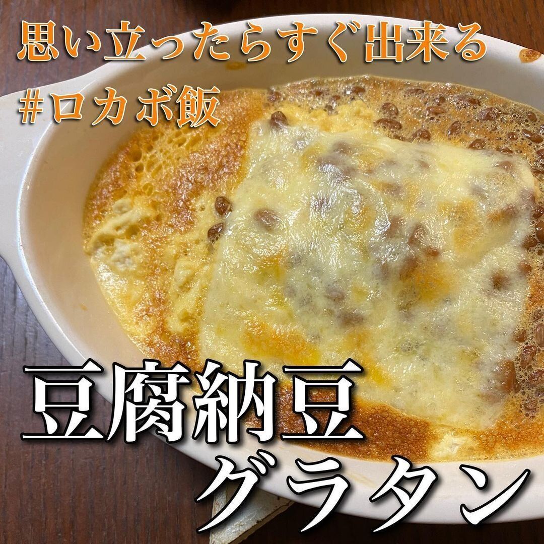 豆腐・卵・納豆を使った、低糖質グラタンのレシピ。豆腐を手でつぶしながらしっかりと水切りし、混ぜ合わせておいた卵・納豆・だしの素を加えます。最後にスライスチーズをのせて、トースターで焼き目をつければ完成。木綿豆腐を使うとボリュームが出て、しっかりと食べ応えを感じられますよ。