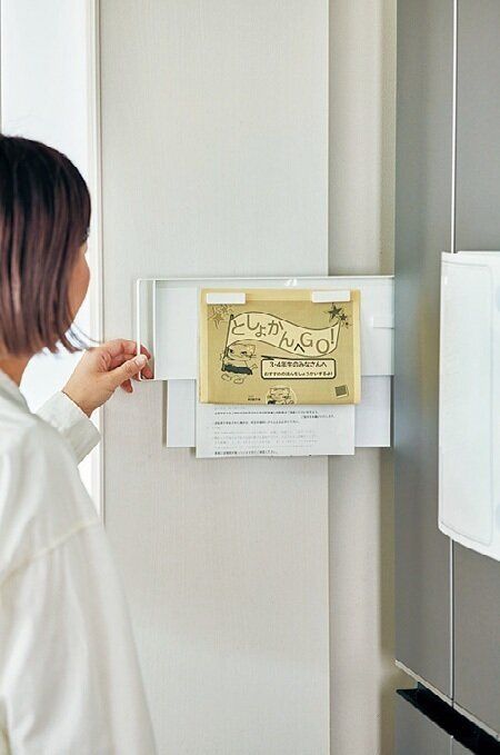 ●母が立ったままチェックできる高さの「すき間」に、よく見るプリント類をこっそり収納