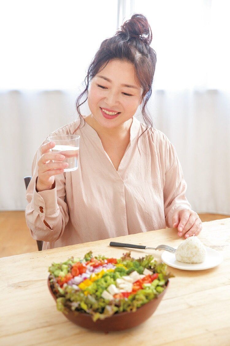 空腹だとつい急いで食べたり、ご飯などボリュームのあるものから食べたりしがち。だから昼食前もまず水を1杯飲み、お腹と心を落ち着かせて。