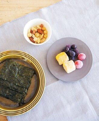 PM3:00【おやつ】おやつはナッツ、海藻類、フルーツを小皿に盛って食べる