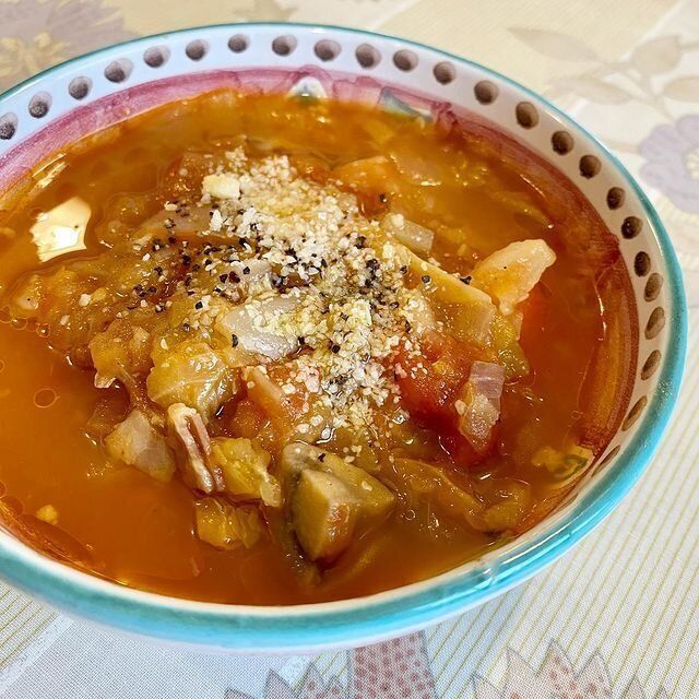 体も気持ちもすっきりする、具だくさんなデトックススープ。作り方は簡単で、たくさんの野菜やベーコンを入れて、まとめて煮込むだけ!食べる直前に、レモン風味のアマニ油・粗びきこしょう・粉チーズをかけていただくのがおすすめのようです。