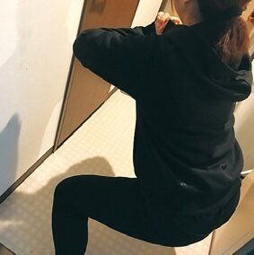 トイレ掃除中、足を広げて腰を下ろします。背中は反らず、お尻を後ろに突き出しましょう。後ろももとお尻の下側に力が入っていたら正解です。