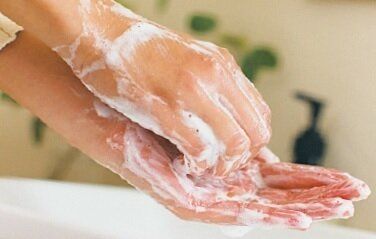 ハンドソープをしっかり泡立てて、手を洗いましょう。手首、甲、指の間、つめの間も忘れずに。泡で手を洗う時間は、ハッピーバースデーの歌2回分が目安です。