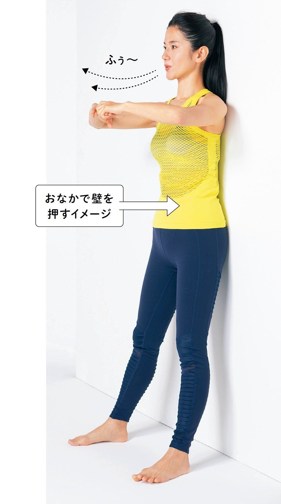 下腹はへこませたまま。