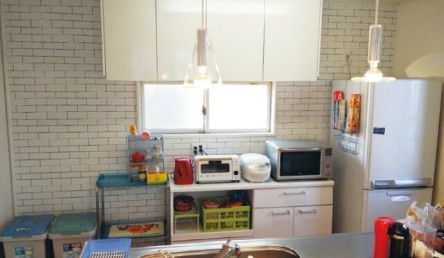 家が大好きで大事に住みたいから、水まわりやリビングを朝からしっかり掃除。「棚などの拭き掃除をすると、奥にしまった在庫に気づきやすいんです。食材なども、使い忘れのムダを防げます」。