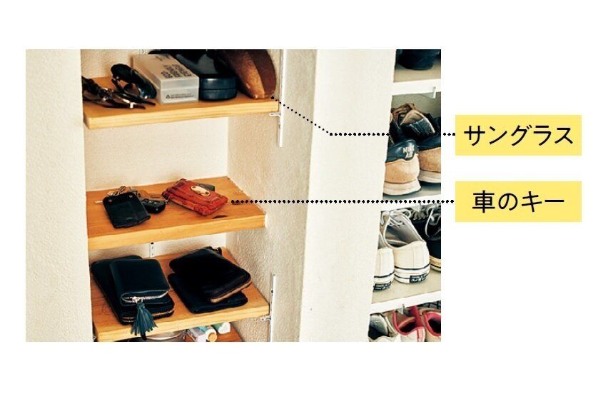 玄関横に小物置き場をつくればリビングのちょい置き防止に