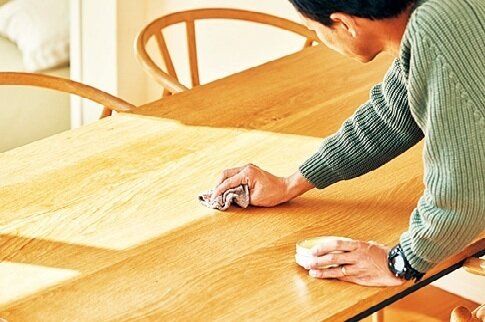 テーブルや床のワックスがけなど、後まわしにしがちな家事は、夫にその都度声をかけて頼みます。「無理に家事分担やルールを決めたりするよりも気持ちがラク」。