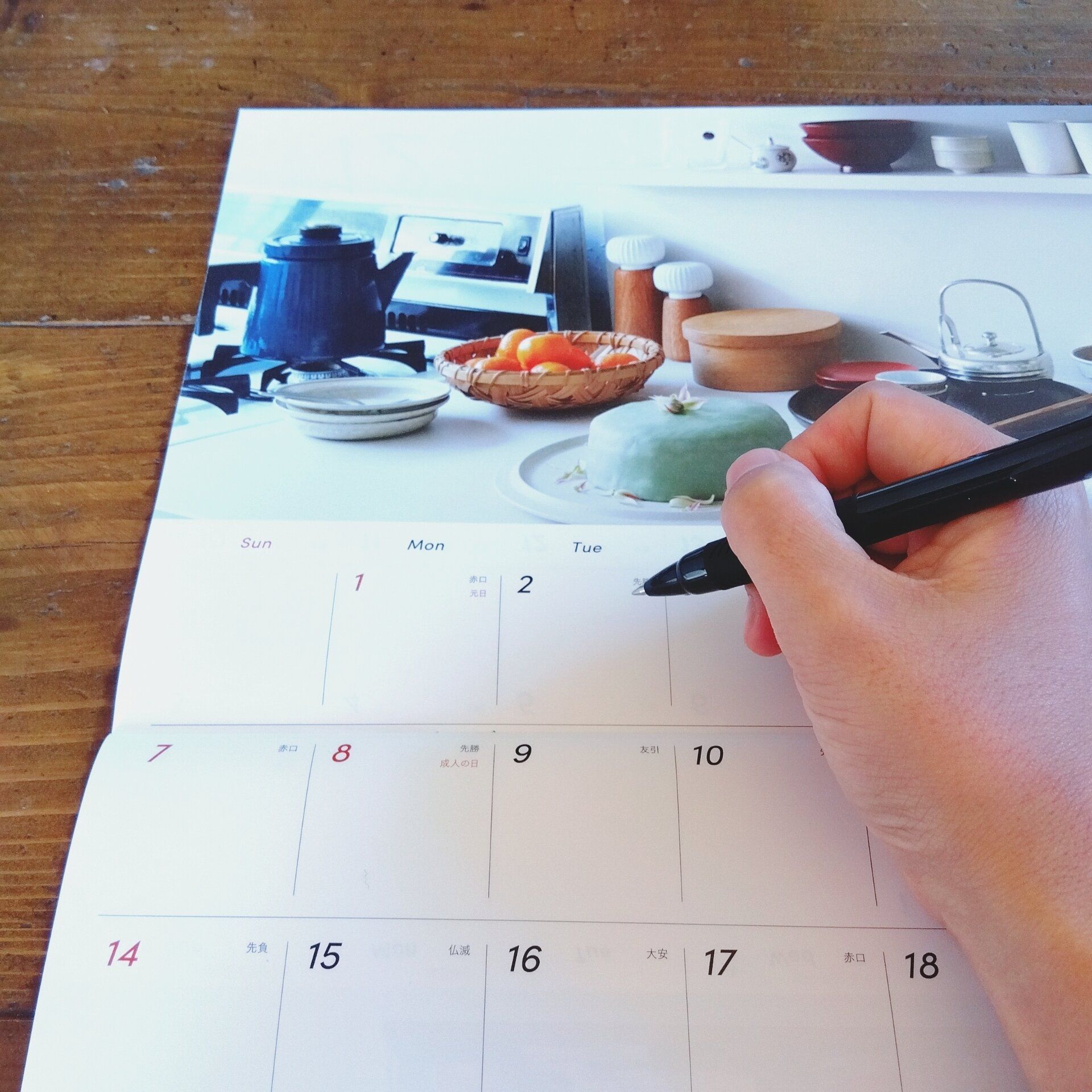 来年のカレンダーに予定を書く