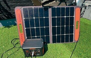 庭に設置したソーラーパネルで太陽光発電をさせ、ポータブル電源に蓄電。スマホやハンディーファンなどの充電に利用し節電しています。