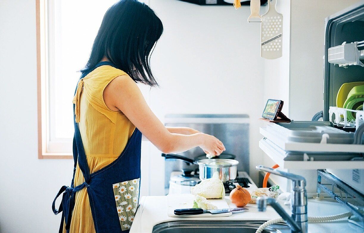 スマホでマネー系YouTubeを流しながら夕食の準備をします。「お金についての考え方や目からウロコの節約テクに刺激を受けてモチベーションを上げてます」。