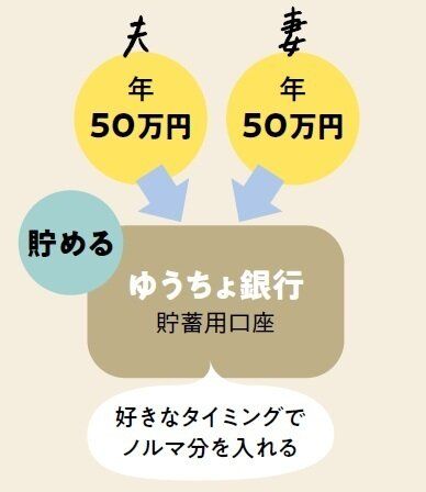 ●“貯蓄用共有口座”を作り、夫婦お互いに年50万円ずつ入れるルール