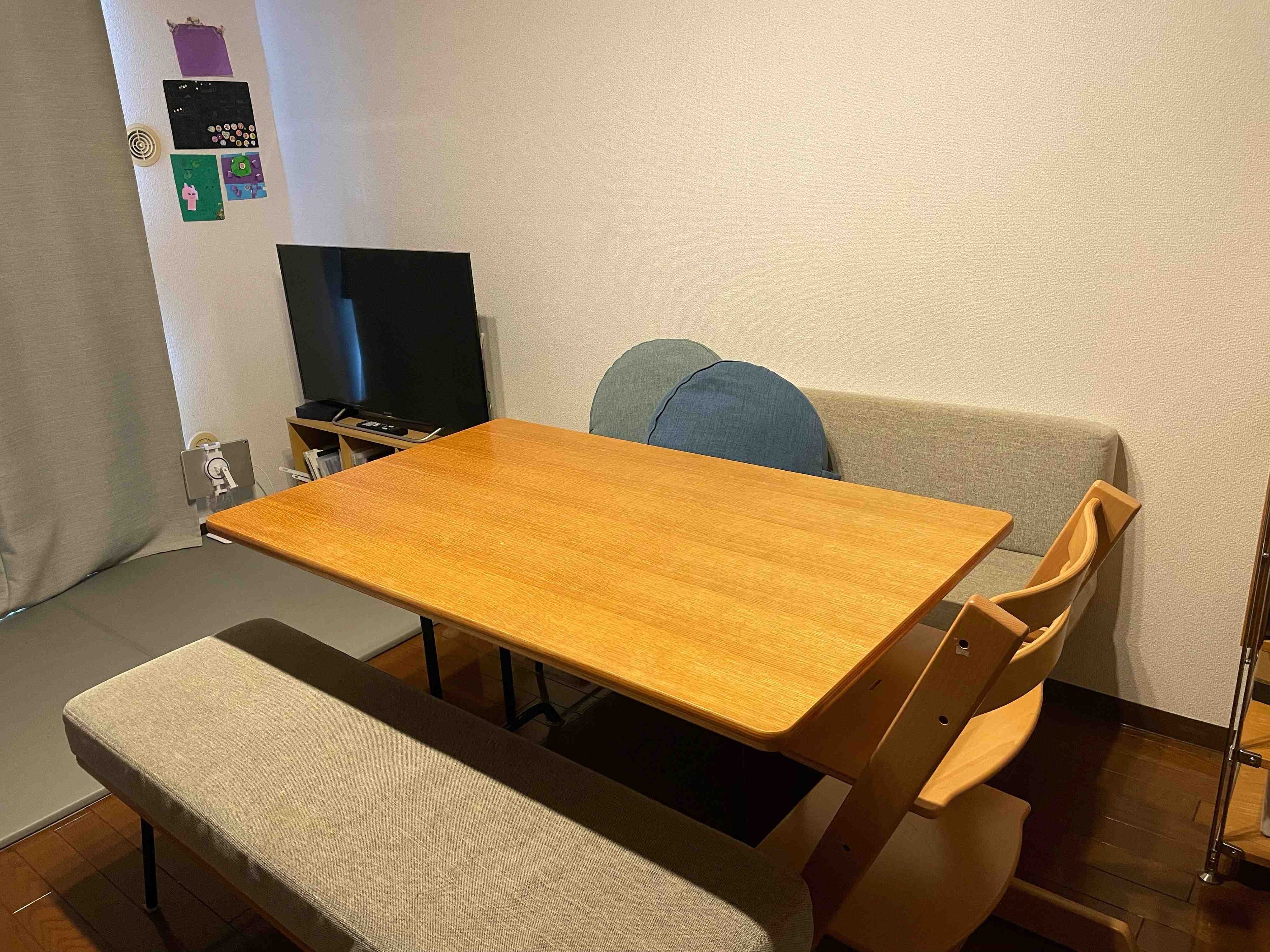 机の上においてあるものも、床に散らばったおもちゃも、夜のうちに一旦リセット。