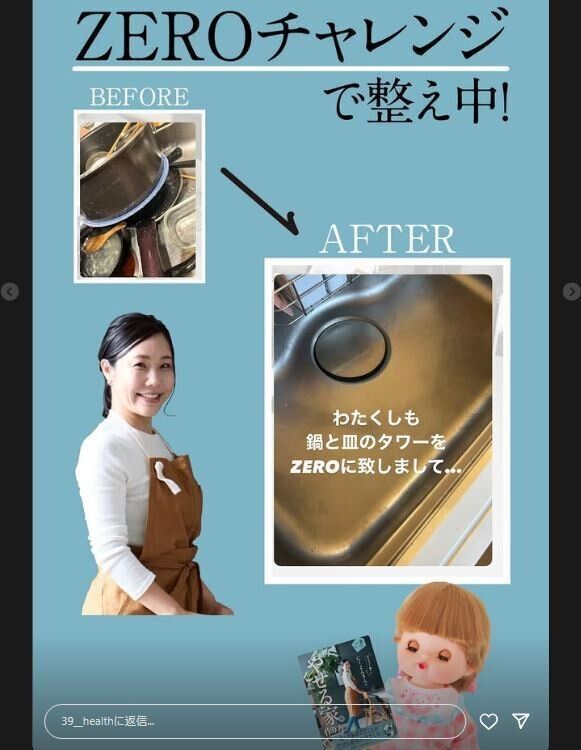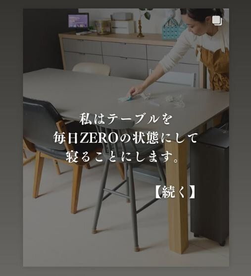 度々インスタグラム上で、「によ部」を開催されているにーよんさんですが、今回にーよんさんがみんなに課したミッションは「毎日9時か21時にテーブルとシンクをZEROにする」こと。そして、ストーリーズやDMで報告し合います。