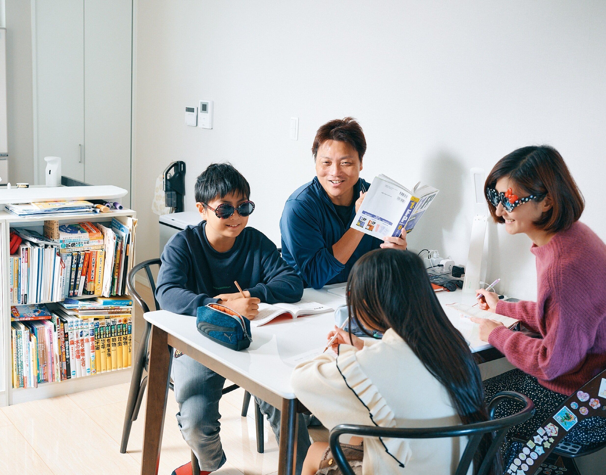 勉強を習慣にする大切さを家族で共有するため、ダイニングで一緒に資格や学校の勉強タイム。全員で同時に取り組めば、やる気や集中力もアップ!