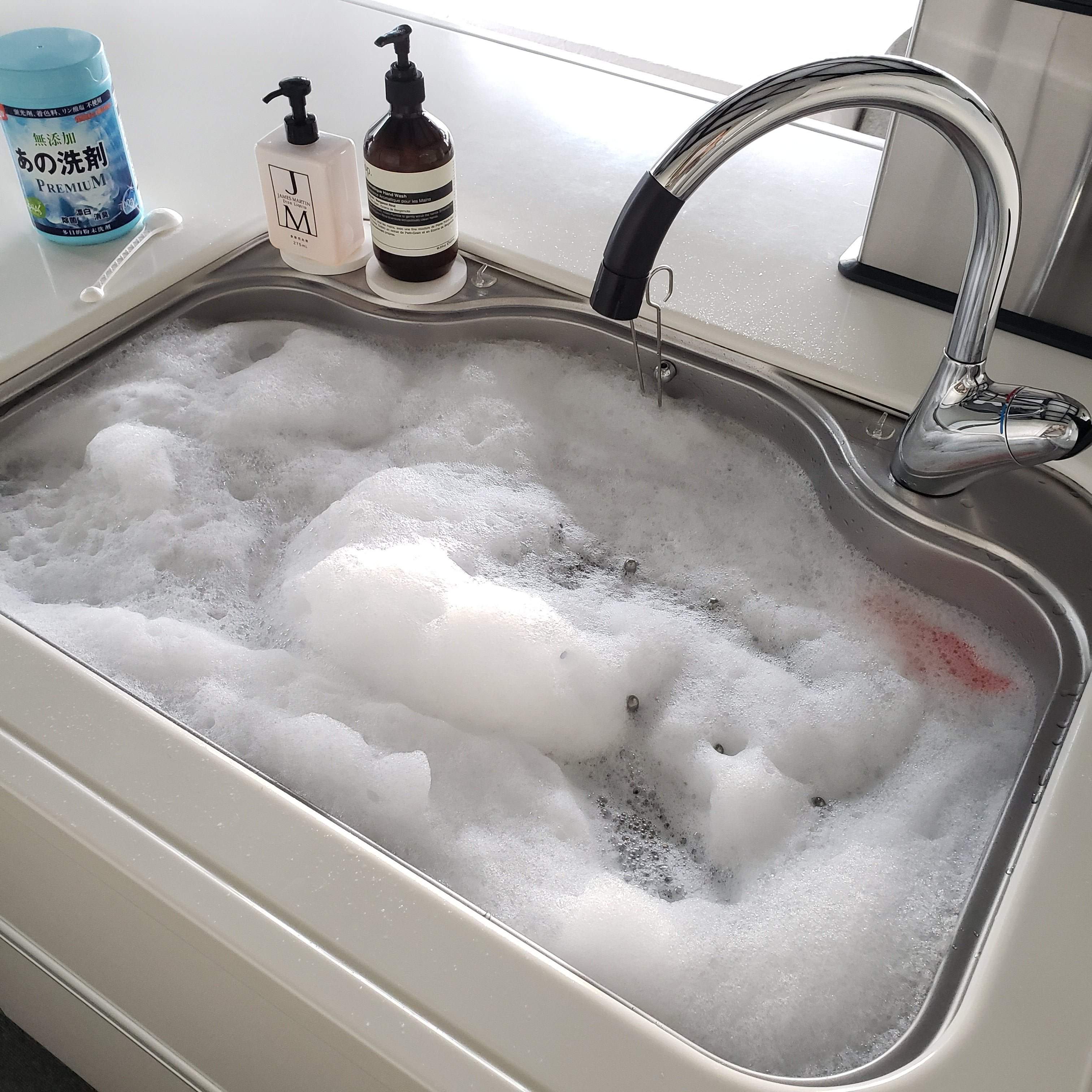 例えばオキシクリーンやあの洗剤は、汚れたものを漬けておくだけでキレイになります。