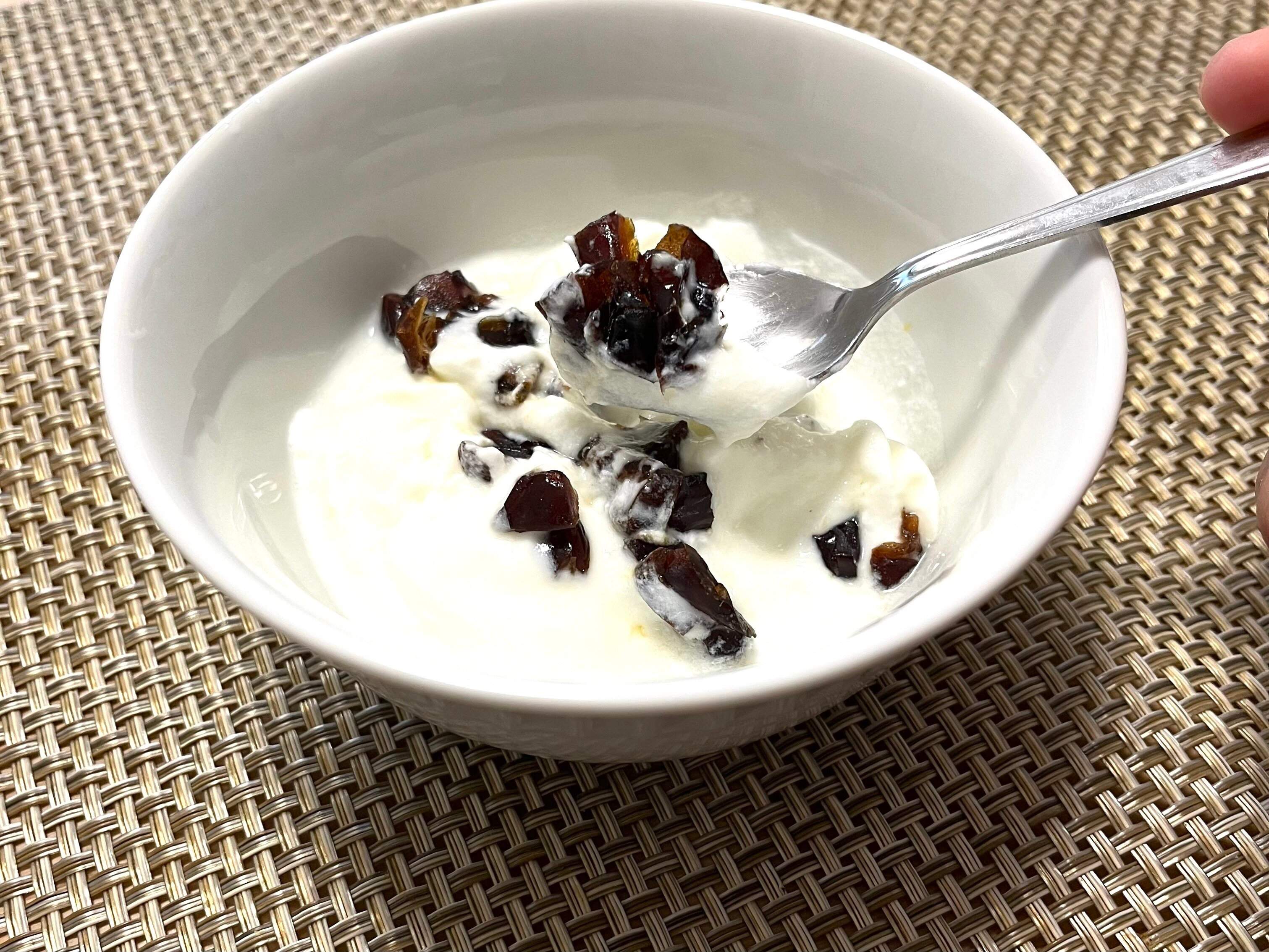 プレーンヨーグルトの酸味の中にある、デーツの甘味がアクセントになってとてもおいしいですよ。