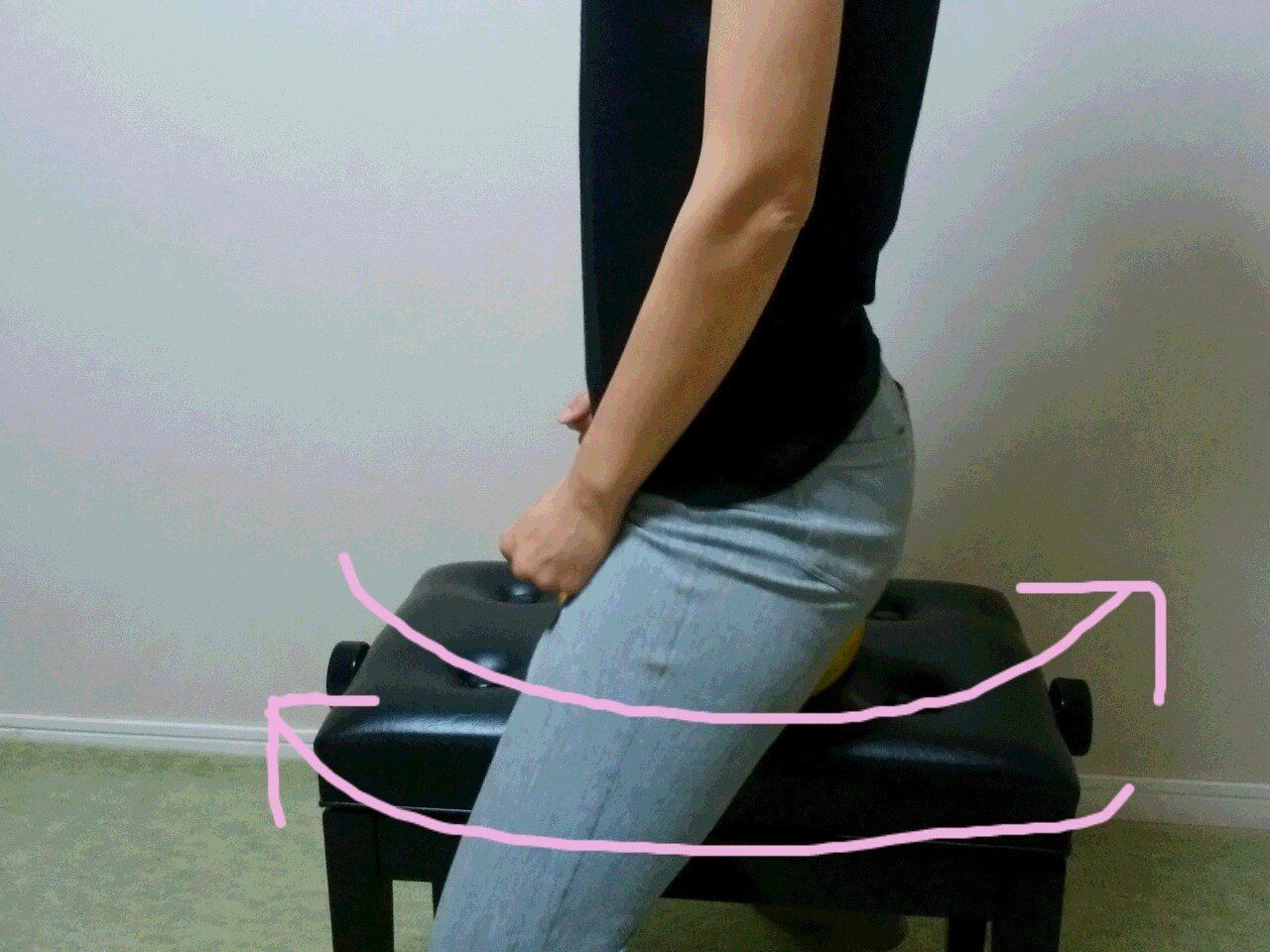 さらに乗馬の動きを再現してみたい時は、椅子の上にボールなどを置いて不安定な状態をあえて作るとよいでしょう。