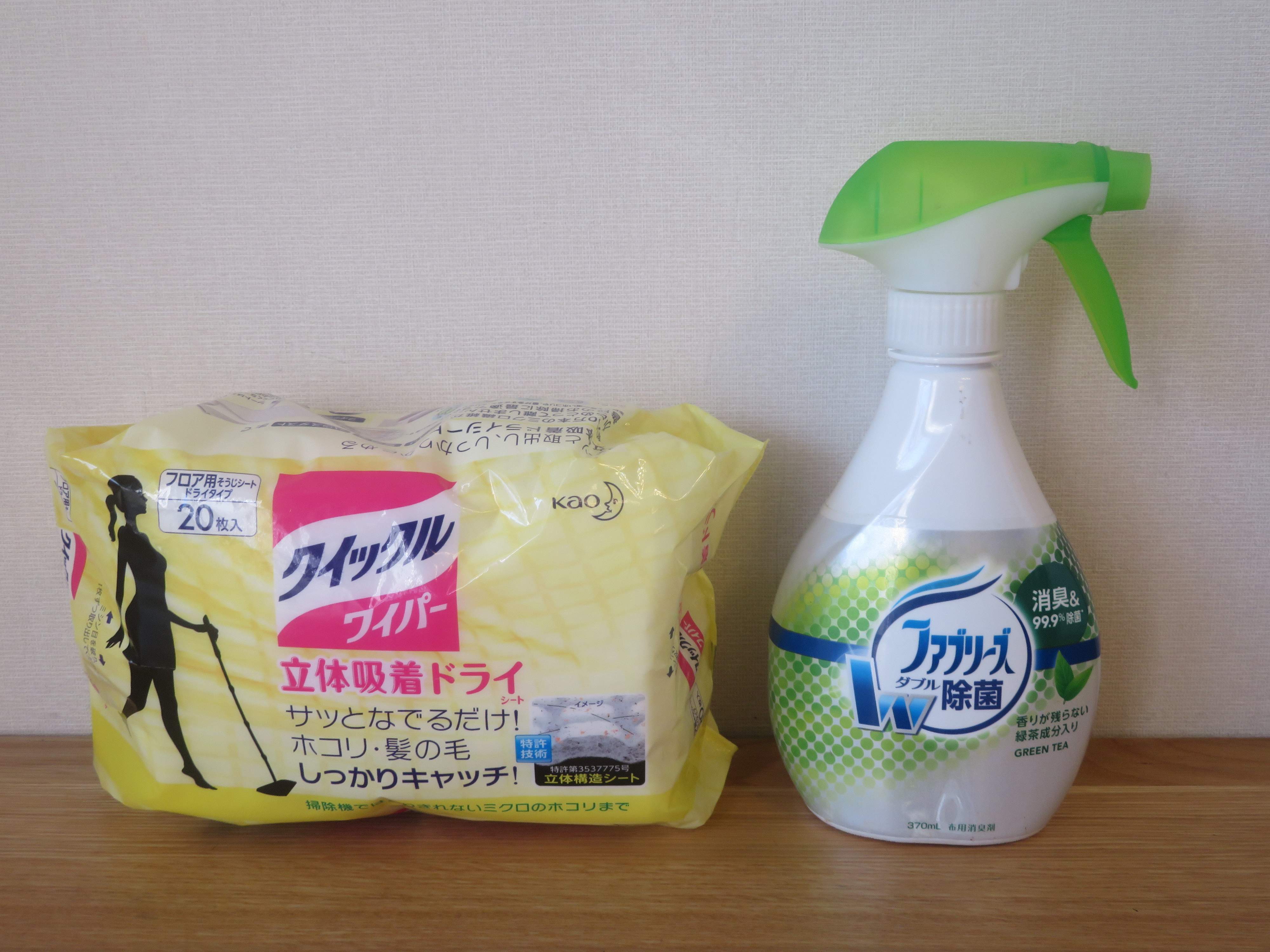 掃除機だけでは空気中に舞っている花粉を取り除けないので、我が家では消臭スプレーとフロアワイパーを活用。