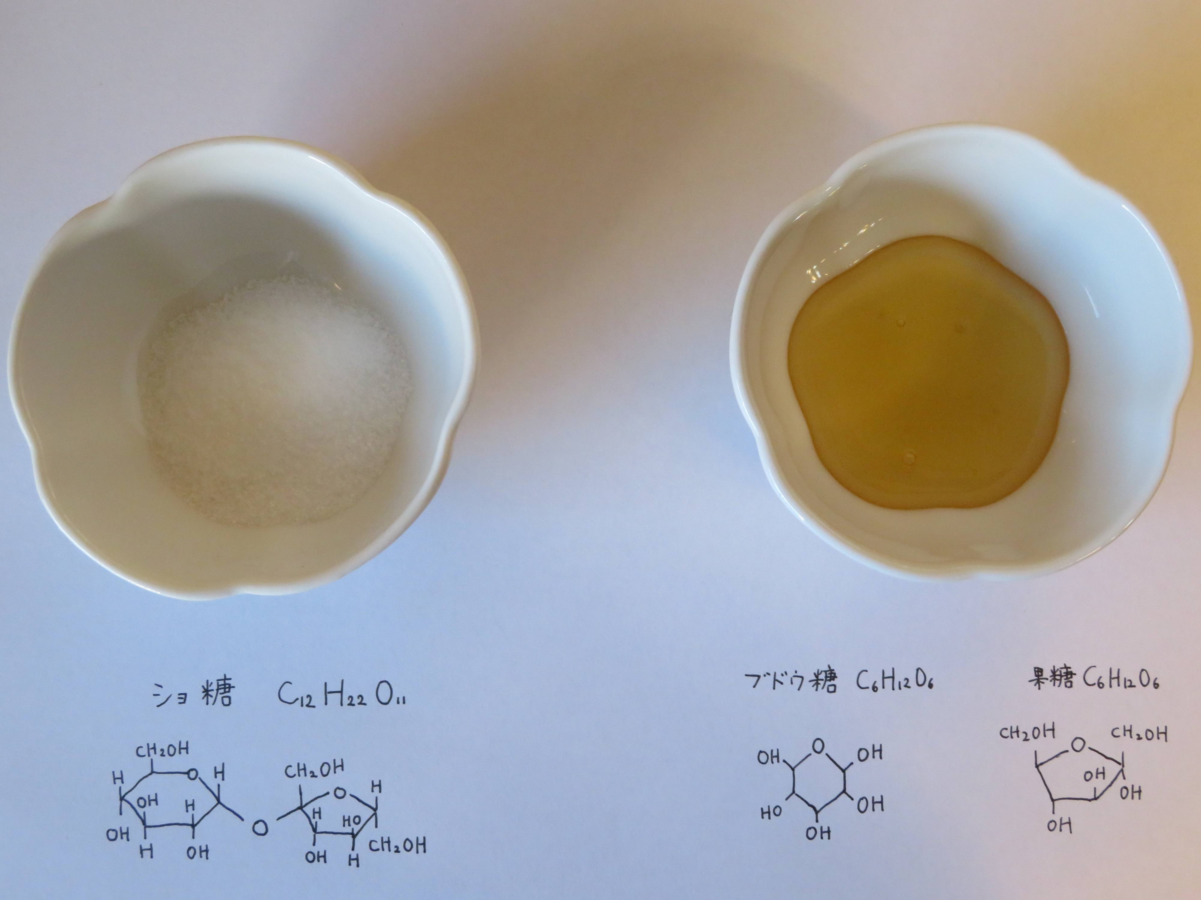 はちみつの主成分は果糖とブドウ糖で、白砂糖はショ糖という成分でできています。
