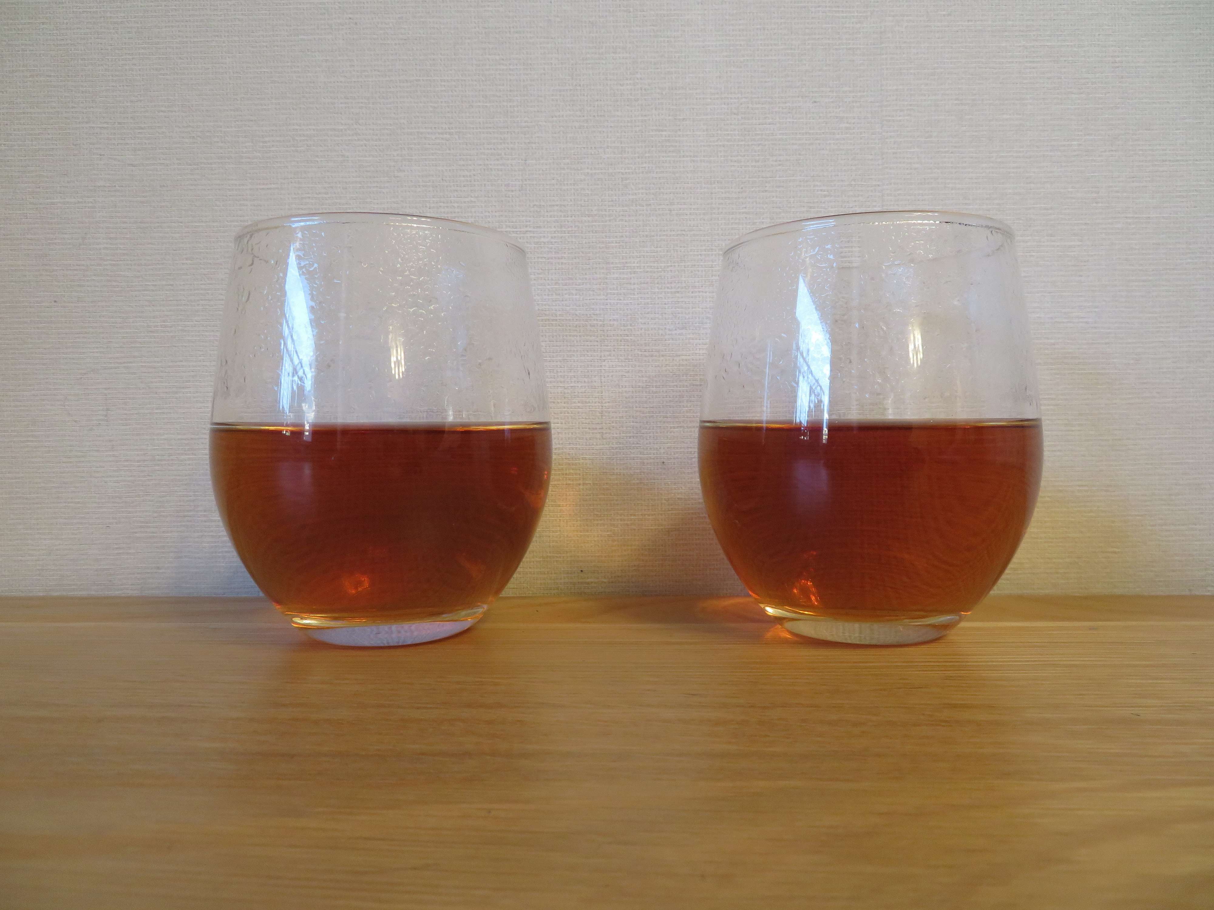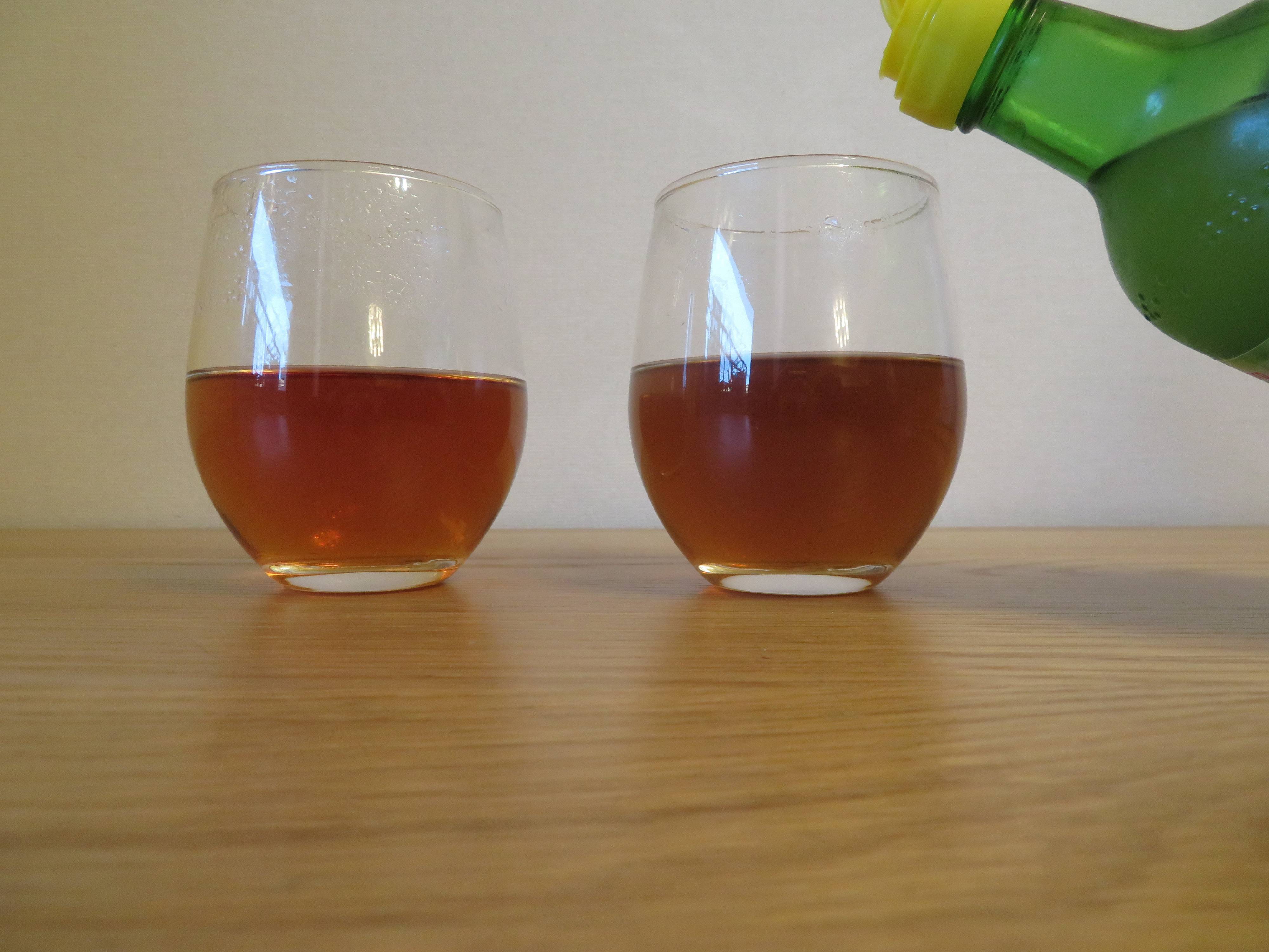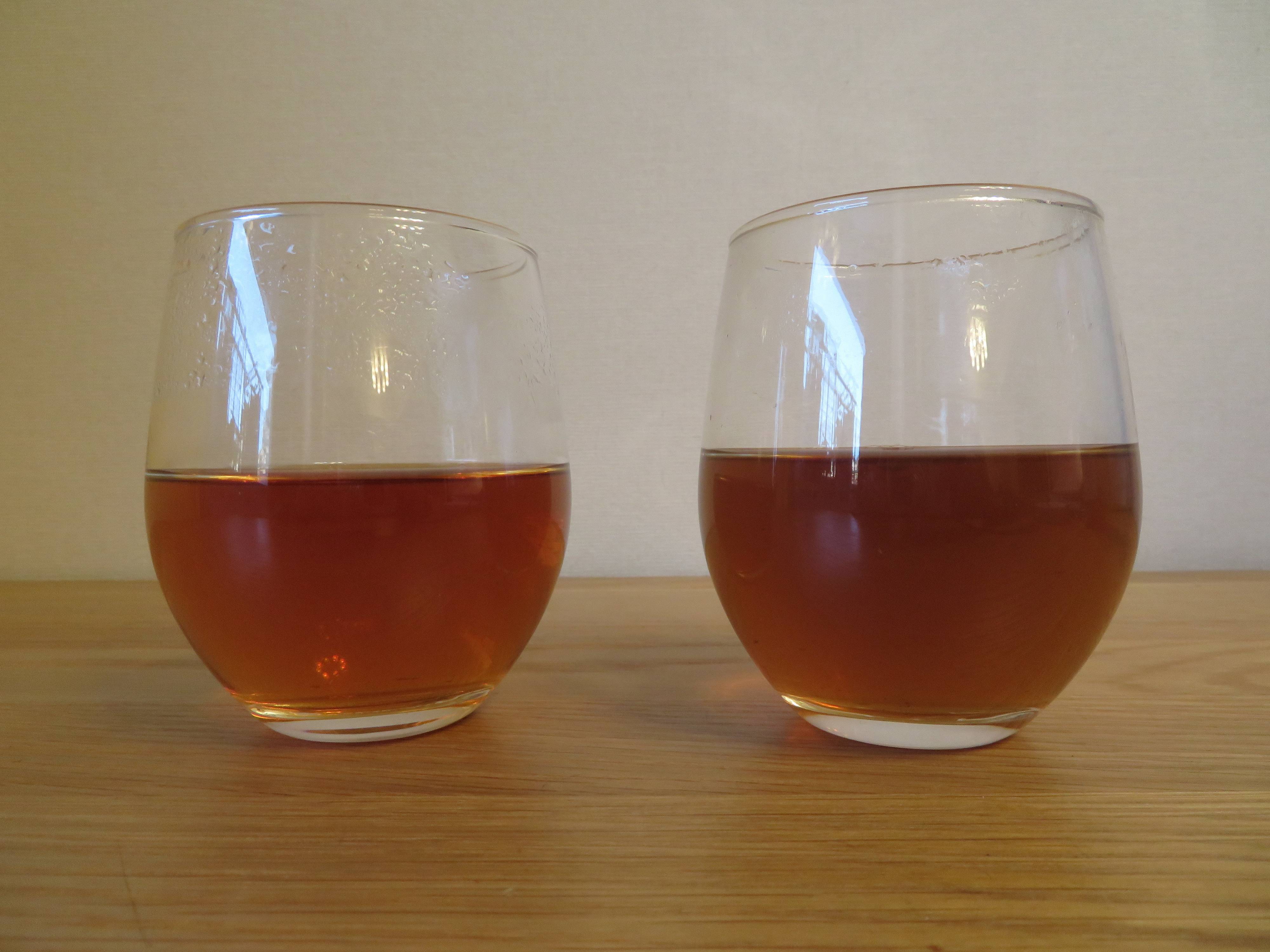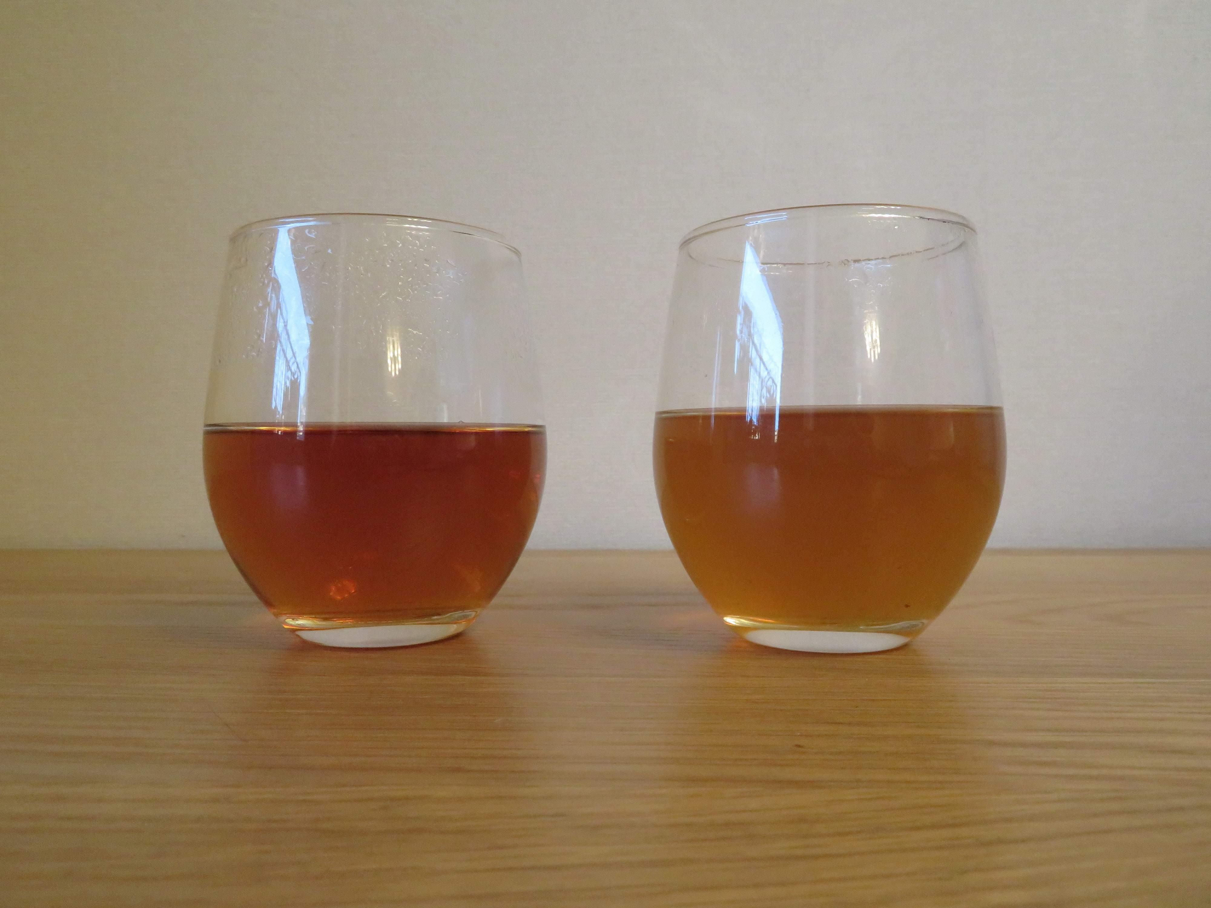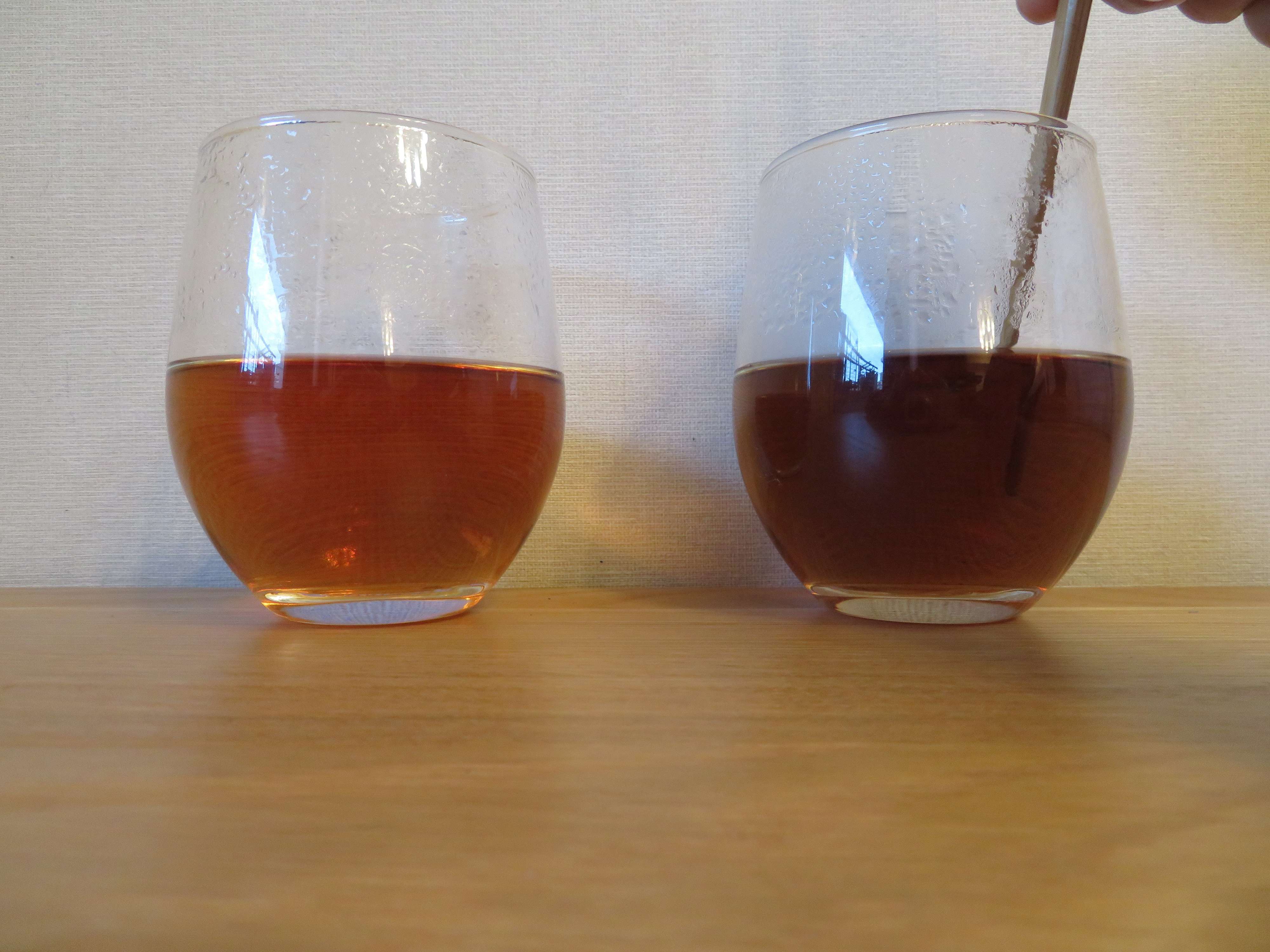 全く同じ濃さの紅茶を用意し、カプセル入り鉄サプリメントの中身を片方に入れてみます。