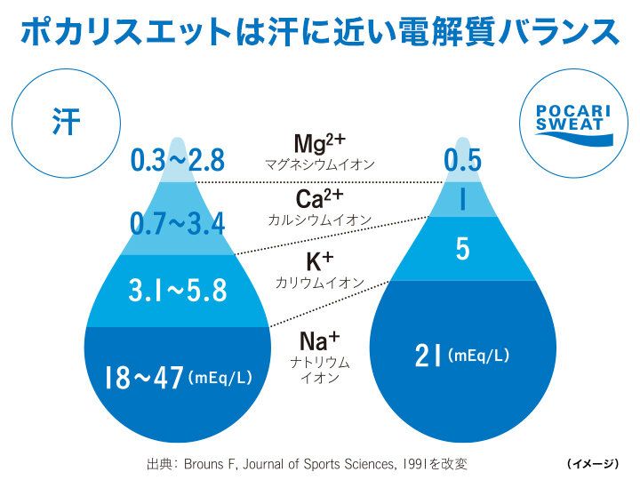ポカリスエットは体液に近い電解質バランス。汗で失われる水分と電解質を補給することができます。