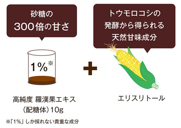 A.砂糖の300倍の甘さを持つ果実・羅漢果(ラカンカ)から作られているから!