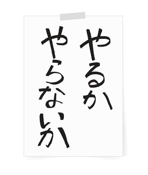 便座に座った目線の高さに貼った「やるかやらないか」の紙を見つめて、精神統一しよう。目標を達成できるのは、小さな一歩でも“やる人”だけ。