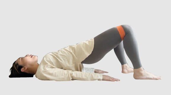 あおむけになり、足を肩幅に開いて膝を曲げる。足裏を床につけたまま、体がまっすぐになるよう尻を上げてキープ。尻をゆっくり下ろす。