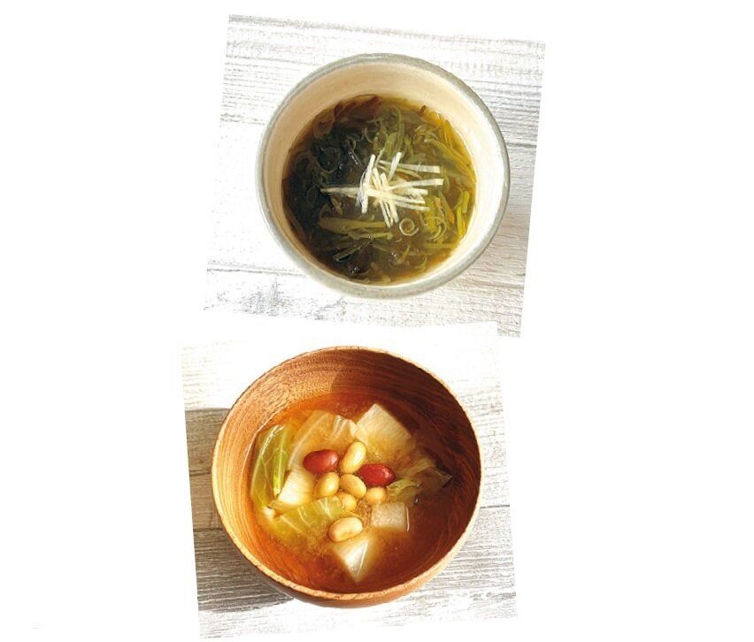 薬膳的に、海藻類、こんにゃく、豆類などは体にたまった物を排出してくれる食材。「もずくとめかぶを混ぜて食べたり、味噌汁に市販のパックの蒸し豆を入れたりと、簡単な方法で排出系食材を取り入れて余分な物をため込まないようにします」。