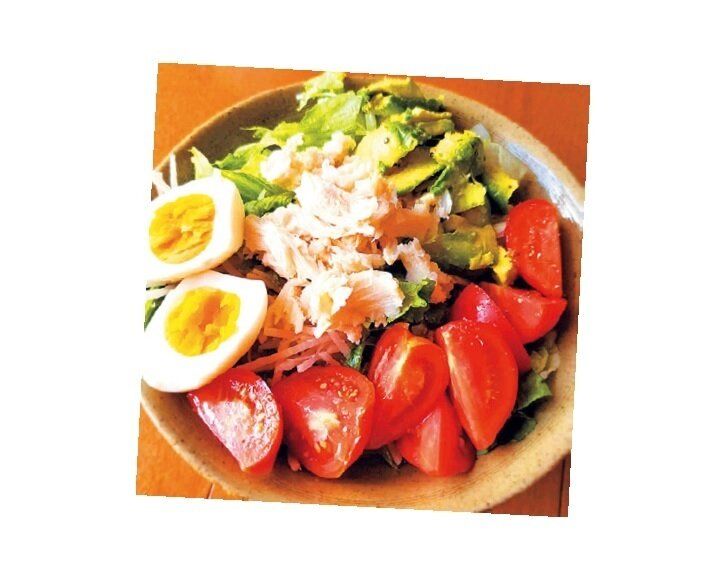 食べすぎた日の翌日はリセットサラダに。「ボウル1杯分たっぷり盛った野菜に、ゆで卵やサラダチキンなどのたんぱく質食材をドサッとのせて、しっかり栄養をとりながら食べすぎを調整。冬は鍋にすることも」。