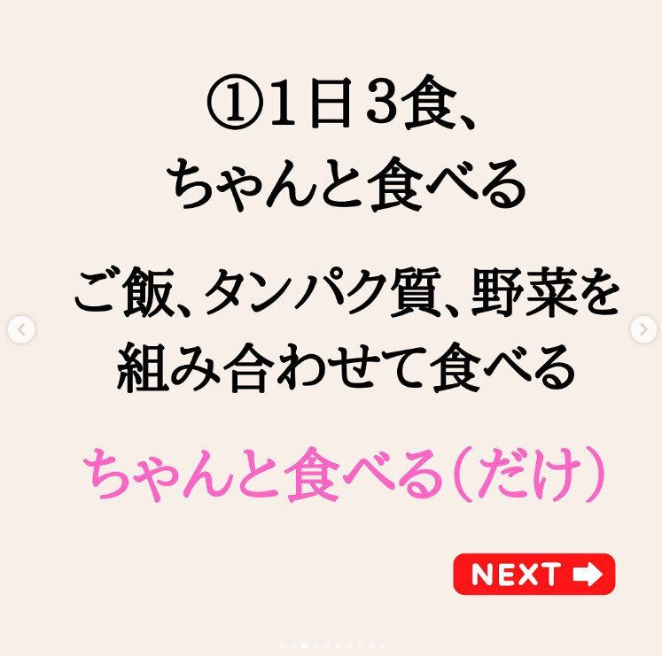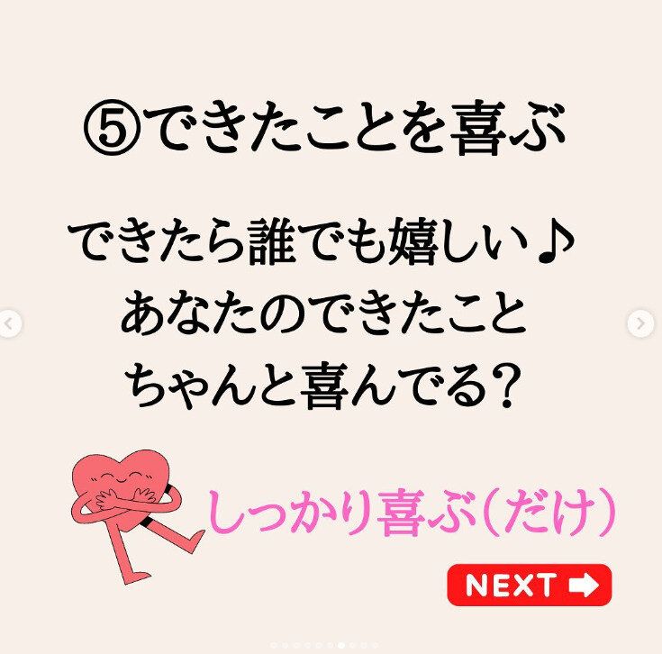 kiyomi_dietさんのダイエットのコツの最後がこちら。「栄養バランスの整った食事がとれた」「睡眠をしっかりととれた」「姿勢よく過ごせた」など、たとえどれか1つであったとしても、今日1日で自分ができたことを「しっかりと喜ぶ」ことが大切だといいます。自信がついて、「明日もがんばろっかな」なんてダイエットのモチベーションにもつながりそうですね。