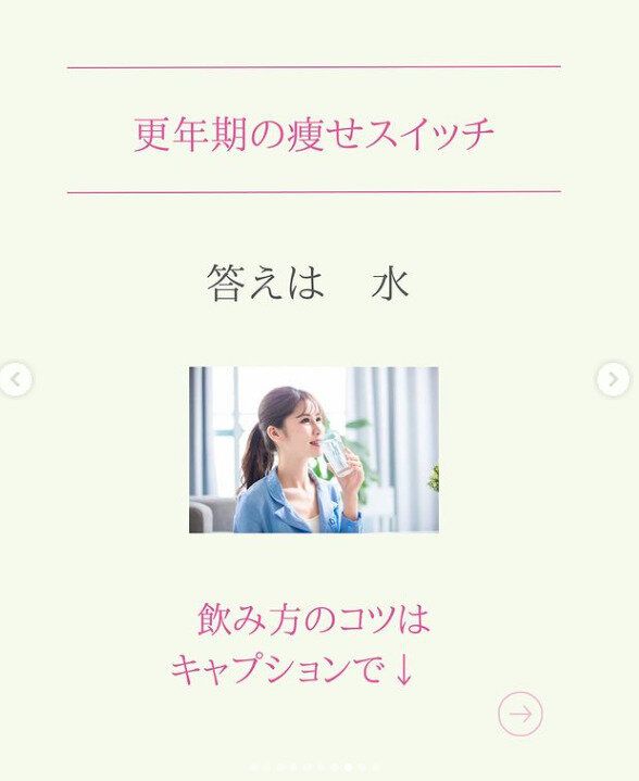 3食、栄養バランスを考えた食事をとること。ゆっくりと食べる、野菜から食べるなど食習慣を変えること。姿勢を正して座ること。睡眠をとること。自分をしっかりといたわること。生活習慣を整えることで大減量に成功したkiyomi_dietさんですが、さらに「痩せスイッチ」を押してくれると太鼓判を押す方法があります。それは、水を飲むこと。代謝がアップして、アンチエイジングや美肌にもつながり、リラックスもできたり、便秘やむくみにもと、いいことばかりだといいます。年齢を重ねた人たちに、とくにおすすめなのだそうですよ!