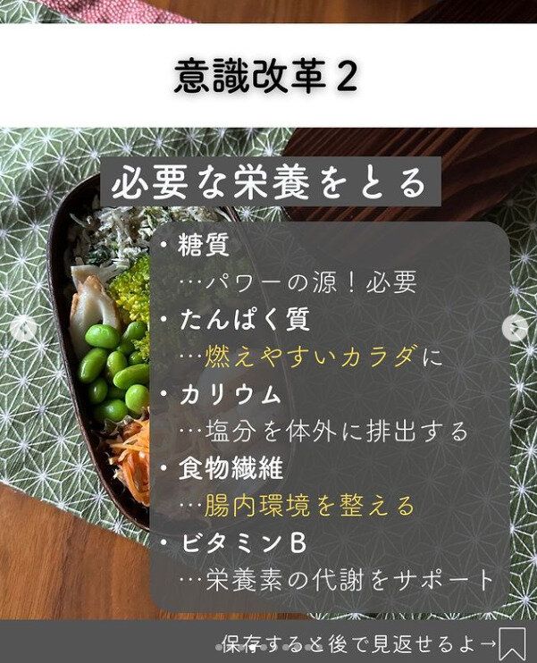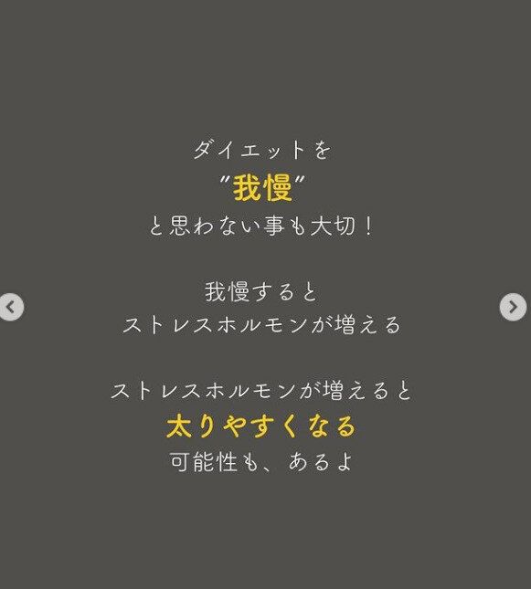 「ダイエットは我慢をするものだと思わない」ということも大切なのだそう。我慢をすることでストレスホルモンが増え、ストレスホルモンが増えることで太りやすくなる可能性もあるのだとか。この意識も改革していきたいですね。