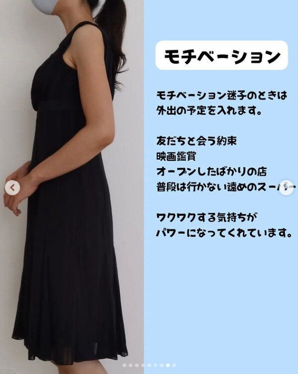 5カ月間にわたり継続したからこそ、ダイエットに成功したdiet_naomamaさんですが、モチベーションがずっと続いたわけではありません。ダイエットへのモチベーションが下がってしまったときは、「友達と会う」「映画を見に行く」「オープンしたばかりの店に行ってみる」「普段は行かない遠くのスーパーに行ってみる」など、外出の予定を入れてみたといいます。ワクワクする気持ちがパワーになったのだそう!