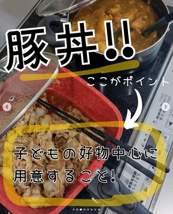 じつは、そのコツのひとつが「週3回、豚丼生活」。鍋やスープをつくっても、子どもたちは食べてくれない…。そこで、子どもたちの大好物「豚丼」で食事づくりを乗り切っているといいます。コツは、豚をゆでることと、油をひかずに豚と玉ねぎを炒めること。子どもたちは大好物が頻繁に登場して大満足。ママは、豚丼にわかめやきのこを加えてオートミールにのせたり、パスタの具にしたりとさらにヘルシーにアレンジ。