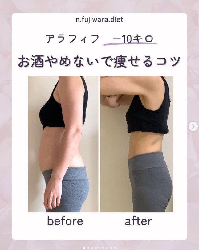 ダイエットは我慢ではないというn.fujiwara.dietさんは、自身の経験を活かしながらダイエットコーチとしても活躍中。ぜひ参考にしてみてくださいね!
