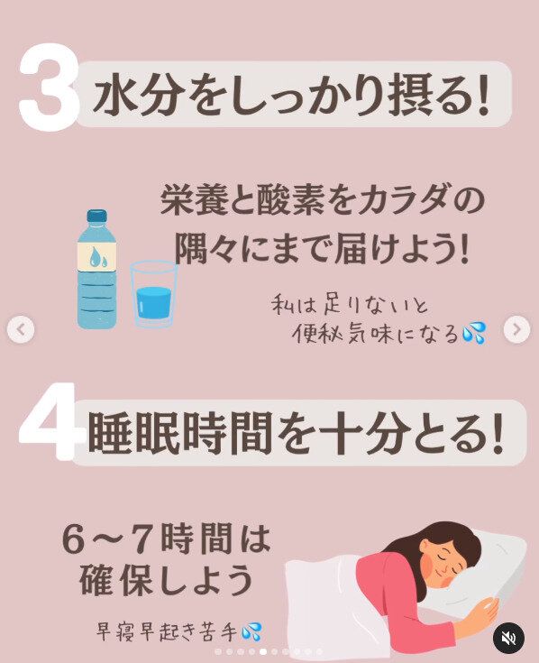 そして、睡眠時間を十分にとることも大切にしています。6~7時間寝て、しっかりと体を休めましょう。