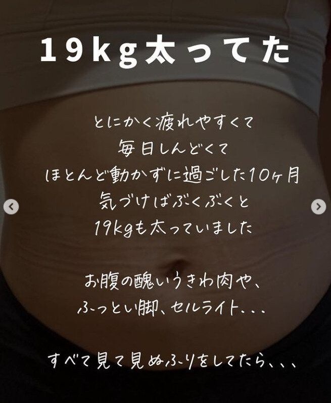 SNS上でもスリムなスタイルを披露しているshiina_recipe_19kgdietさんですが、フルタイム勤務をしていたころは、料理も苦手で生活習慣もボロボロ。2人目を妊娠したころには、疲れやすくて、動かない生活が続き、気づけば19kgも太ってしまったのだそう。後輩に、何気なく写真を撮られた自分の後ろ姿を見て愕然としたといいます。産後も体型は戻らず、痩せたいけれど体が動かない。ダイエットレシピをつくりたいけど、料理も苦手でめんどう。そんな「自分が嫌い」だったといいます。