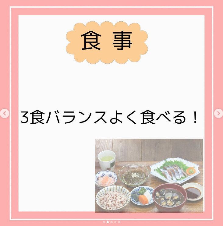 ダイエットは食事が8割といわれているくらい、栄養バランスのとれた食事をきちんと3食とることが大切だといいます。食べなければ痩せるという思考はNG。栄養不足になり、代謝が下がるため、痩せにくい体になってしまうといいます。