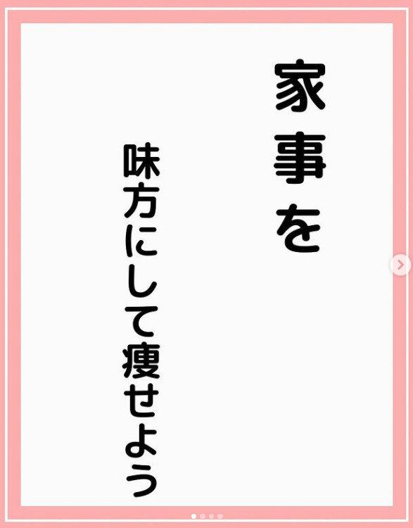 「食事」「運動」「睡眠」という3つのダイエットの基本を教えてもらいました。でも、なかなか運動をするまとまった時間がとれないという人も多いですよね。takako__diet141さんは、家事も味方につけてダイエットを後押ししています。床そうじ、お風呂そうじ、掃除機をかける、料理をつくるなど、家事は毎日続くもの。体を動かしているのですからカロリーも消費しているのです。そう考えると、めんどうな家事も一生懸命にやりたくなってきますよね!