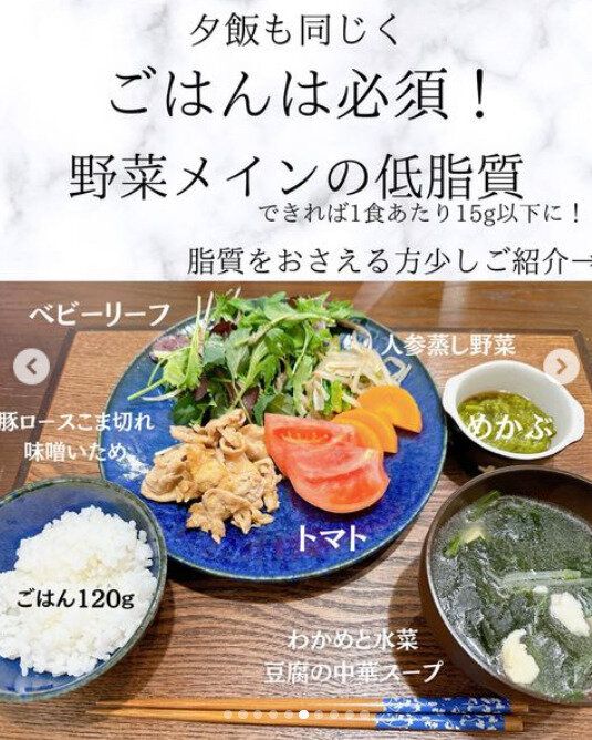 ボディメイキングのために、自宅トレーニングもコツコツと続けているhana.fula_dietさんですが、「痩せたいのならば、食事管理は絶対条件」といいます。これらを意識していくと2カ月ほどで体も変わってくるのだそう。具体的にどんな食事を食べているのかみてみましょう。