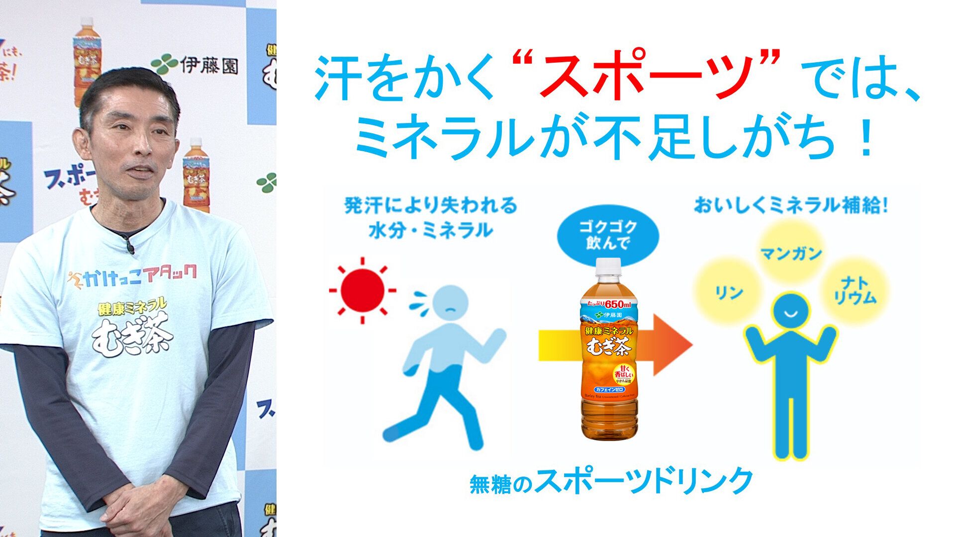 伊藤園は皆さんの健康づくりをサポートするブランドして、健康的に体を動かしたときに失われる水分とミネラルを補給することの大切さを伝える活動を続けています。