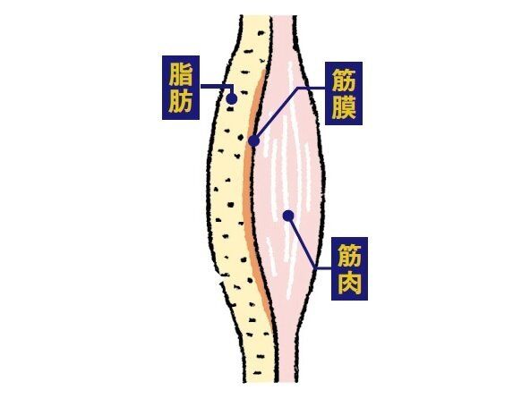それをほぐすためには、筋肉と脂肪の間にある筋膜をはがすことが大切。