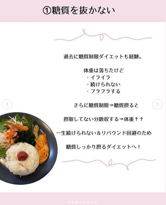 まずは食生活の改善を行ったyun_0or100さん。過去に無理な食事制限をして、リバウンドを繰り返したので、今回は「食事の制限」ではなく、栄養バランスを考えた「食事の管理」という方法に。結果としてきれいに痩せることもでき、大好きだというお米も食べることができるので、食事に関するストレスがありません。