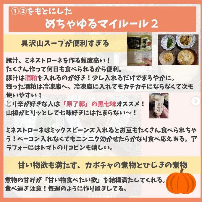 先輩ダイエッターさんの本やアプリを参考にしながら続けているのが、具だくさんスープ。豚汁やミネストローネをつくりおきしておくことも多いそう。豚汁には酒粕をいれたり、ミネストローネには、ミックスビーンズを入れたりと、栄養とおいしさも考えた万能スープ。ヘルシーメニューは、こういったスープなどで、無理なく続けていける工夫をしています。