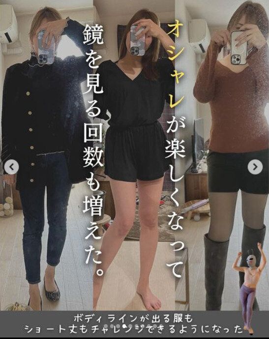 昔のように、着やせすることを重視した服選びからは卒業!おしゃれも楽しくなり、鏡を見る回数も増えたのだそう。40代でも大丈夫。今日からできる「わたしが続けられるダイエット」を見つけていきましょう。