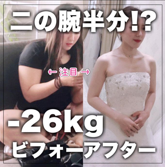 こちらが-26kgのビフォーアフターの写真。全体的なシルエットはもちろん、二の腕を比較しただけでも、SNSの文字通り「半分」になったと言っても過言ではありません。独身時代、そして産後とダイエットを成功させてきた__356gramさん。その後もずっと体形をキープしていることもすごいですよね!